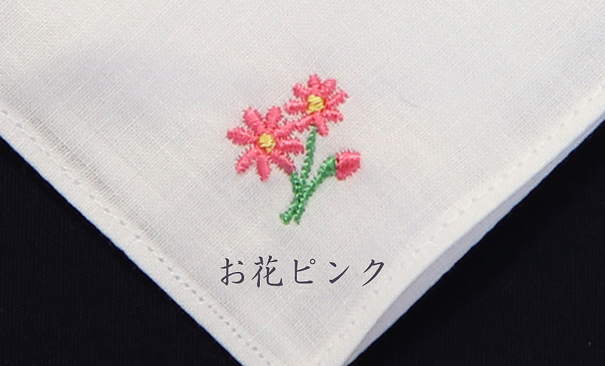 ジョリコムアンクールの綿ハンカチは、白の綿ハンカチに可愛い刺繍をあしらいました。肌触りの柔らかな綿100%の素材を使用しています。