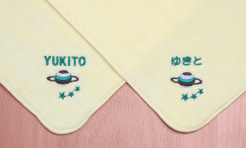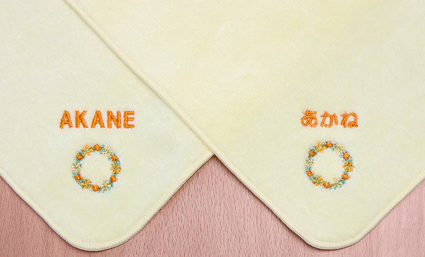 タオルの産地で有名な四国今治製のカラータオルハンカチに可愛いらしいモチーフ刺繍をあしらいました。