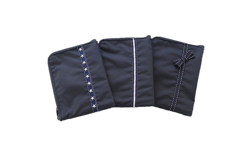 ワンポイントの刺繍やテープ使いは、どんなお洋服にも馴染みやすい清楚で上品なデザインです。ポケット正面にハンカチが収納でき、小さなお子さまでも出し入れしやすい工夫をしています。マジックテープ付きのふたを開けるとミニティッシュが収納できるようになっています。