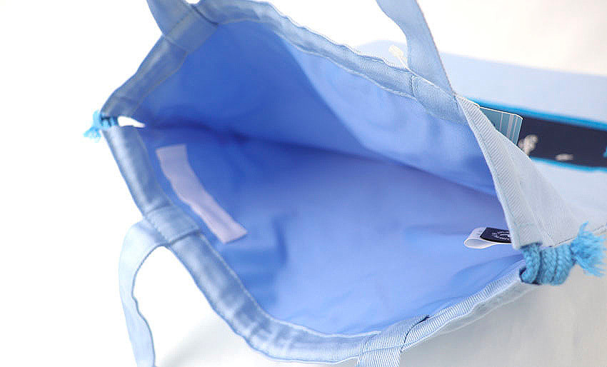 撥水加工の素材にシンプルなワンポイント刺繍をあしらった物や、美しさと温もりを感じる手刺繍入りの持ち手付き巾着袋も取り揃えております。