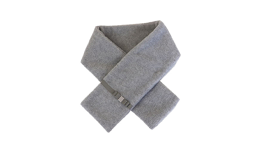 ふわふわとした肌触りの良いフリース素材が首回りを暖かく包んでくれます。背面のループに通してクロスさせるだけので、簡単に着用いただけます。内側にお名前がきちんと書けるタグ付きになります。