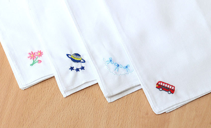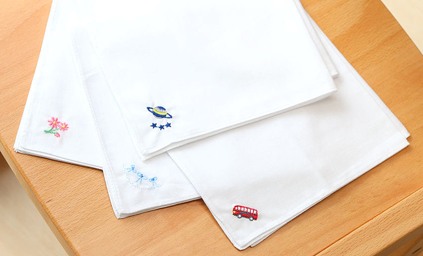 たたんでも厚みが出すぎず、ポケットにすっきりと収まり、お受験本番にも最適な綿ハンカチです。ハンカチをたたむ練習にもピッタリなアイテムになります。