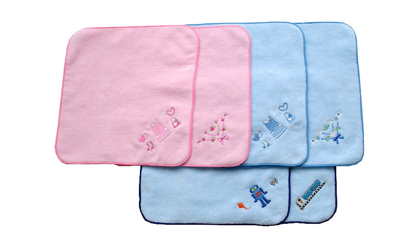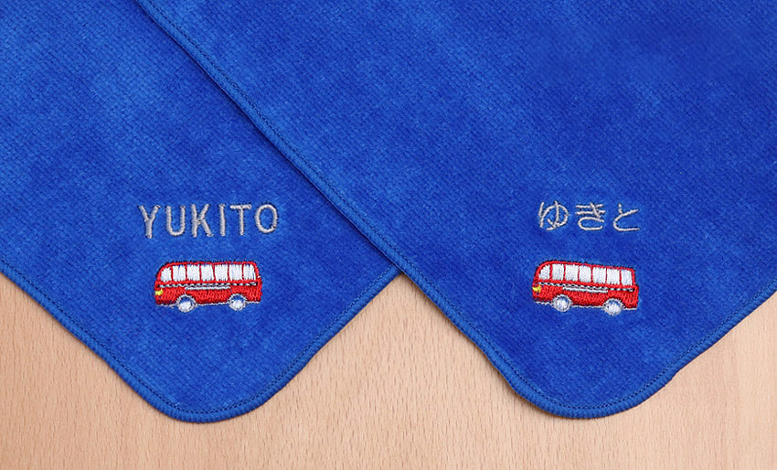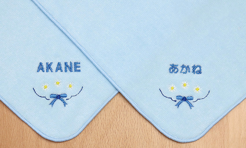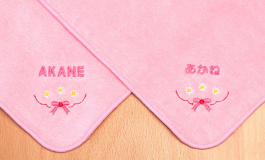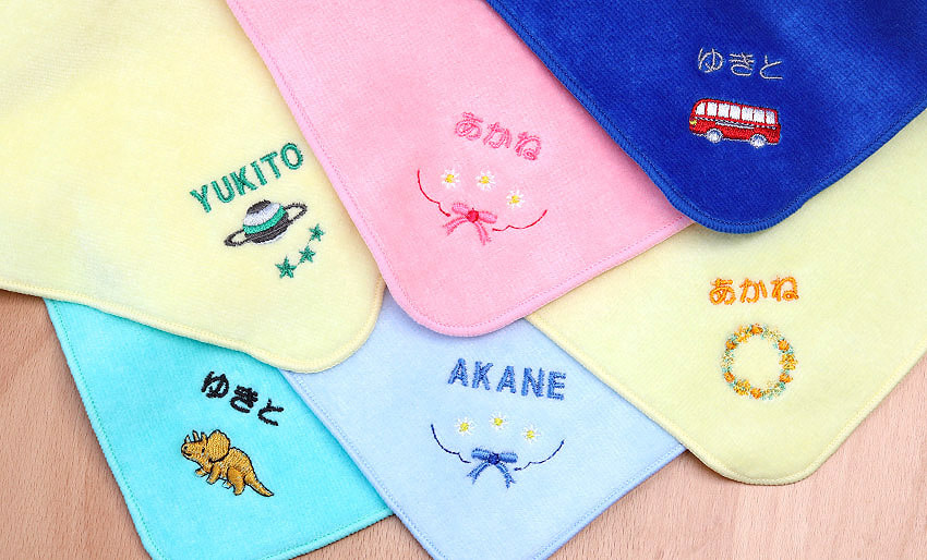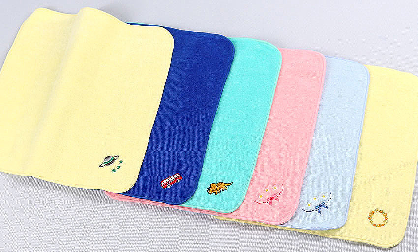 タオルの産地で有名な四国今治製のカラータオルハンカチに可愛いらしいモチーフ刺繍をあしらいました。
