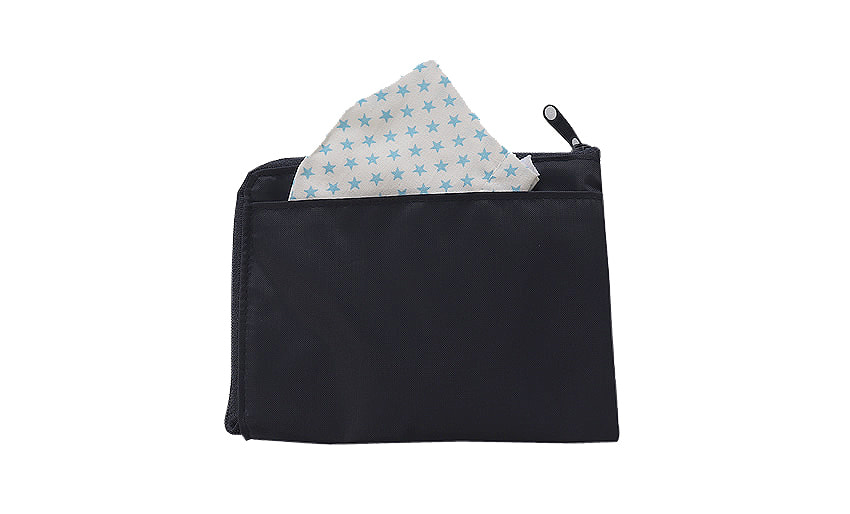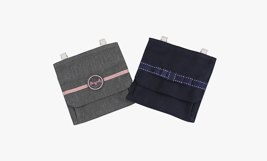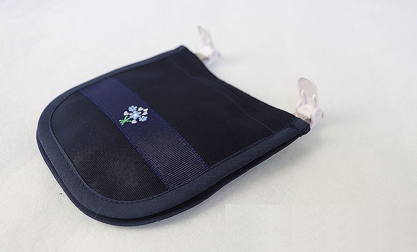 15センチのタオルハンカチや綿ハンカチ、ミニサイズのティッシュがきれいに納まります。2WAYタイプなので、クリップでも安全ピンでも装着できます。