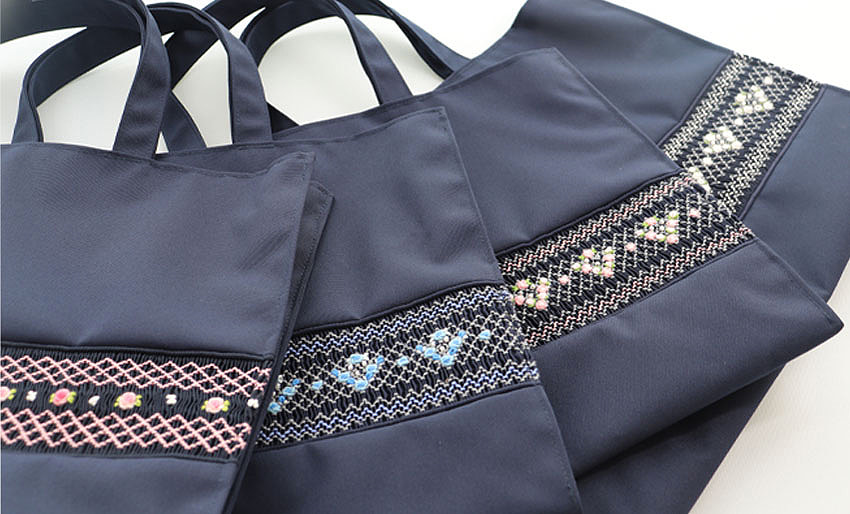このトラディショナルなスモッキング刺繍は、ロイヤルキッズのお洋服によく用いられていたことから人気に火がつき、日本でもお子様のフォーマルなお洋服にあしらわれることも多く、上品で清楚な印象です。ジョリコムアンクールのスモッキング刺繍バッグは雑誌で度々紹介され注目を集めています。