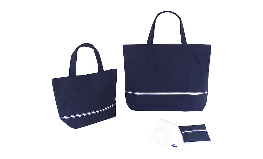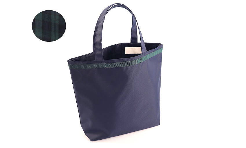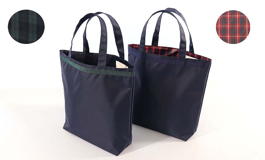 トートバッグの開口部にグログランテープをあしらいシンプルに仕上げています。男女の性別を問わず、お子様~大人の方まで幅広くお使い頂けます。